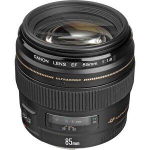 Prized for portraiture, the EF 85mm f/1.8 USM from Canon is a short-telephoto prime characterized by its slightly compressed perspective for achieving flattering results. Its bright f/1.8 maximum aperture also